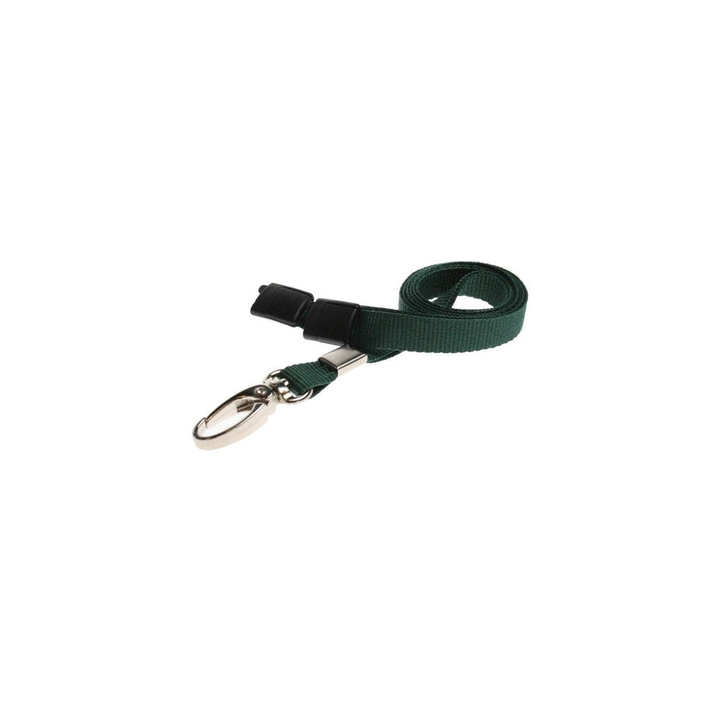 The woven material means this lanyard is industry leading quality. It is not a rough or coarse material and looks great too. The lanyards come with a plastic safety breakaway to help prevent injury and protect the wearer. The lanyards have a plastic hook attachment and are 3/8" thick woven polyester.